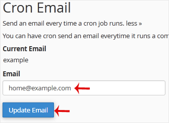 You can enable cronjob notifications or update a cronjob's email address in cPanel.