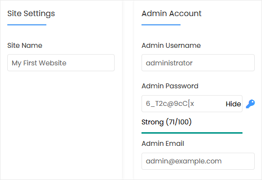 - Admin Email: Your email address. It is helpful for admin account password reset, notification, etc.