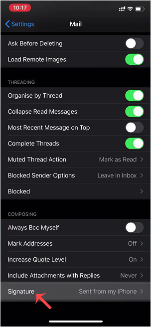 After changing it, your iOS will send your customized signature instead of the default signature.